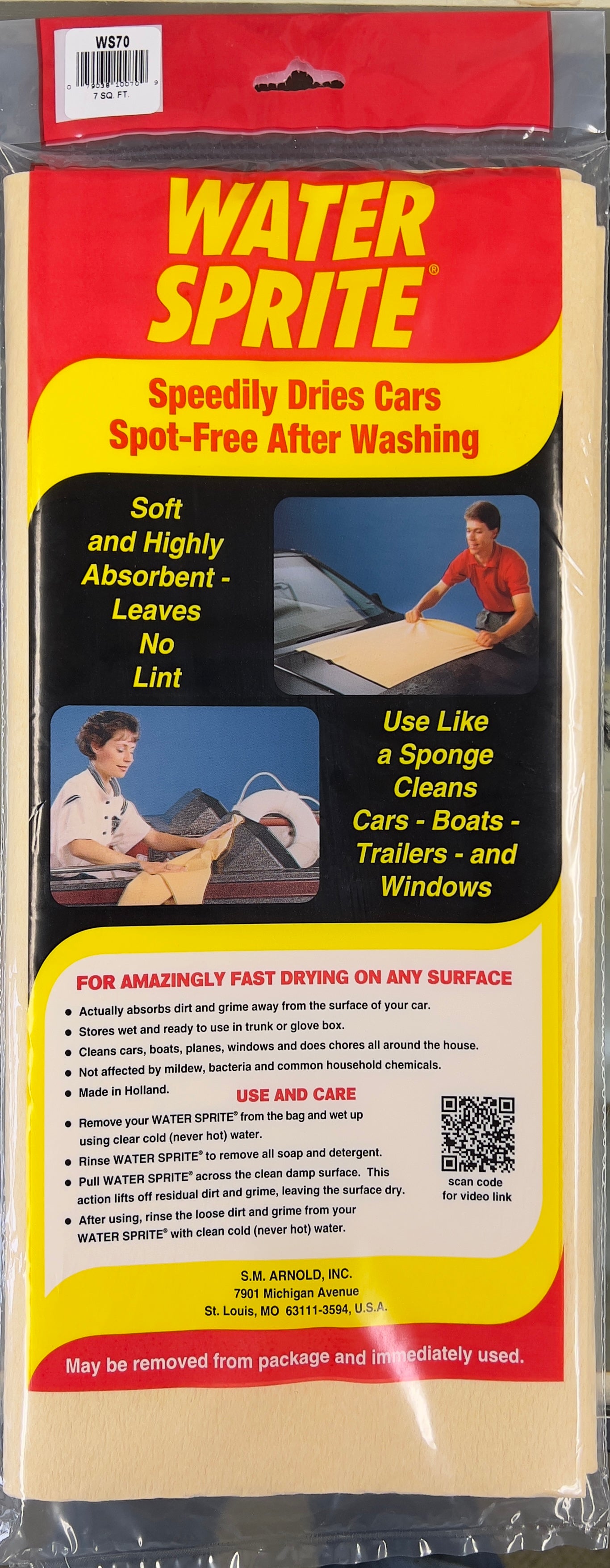 fine finished surfaces. WATER SPRITE® actually lifts off residual dirt and grime away from the surface, leaving it clean and dry. It is not affected by mildew, bacteria or common household chemicals. It is used in place of a sponge or towel and when wet, can be used immediately upon removal from its package